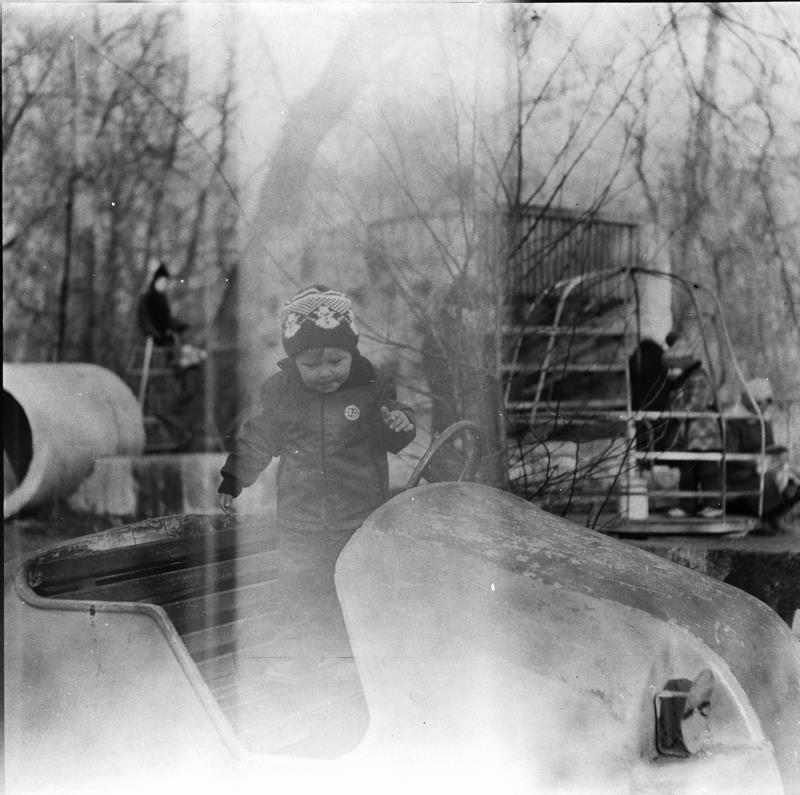 By the car, which should be a Jiguli (a Soviet version of the Italian Fiat 124, known as "Lada" in France), it could be the 1970/80 years. I owned a Fiat 124, then a 125 in the 65/75 years. Rather impressive and nervous for that time!