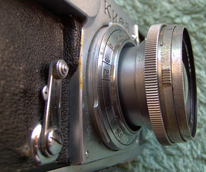 Kiev 1949 with collapsible ZK Zorki 50/2 lens. Last of the pure Contax copies.