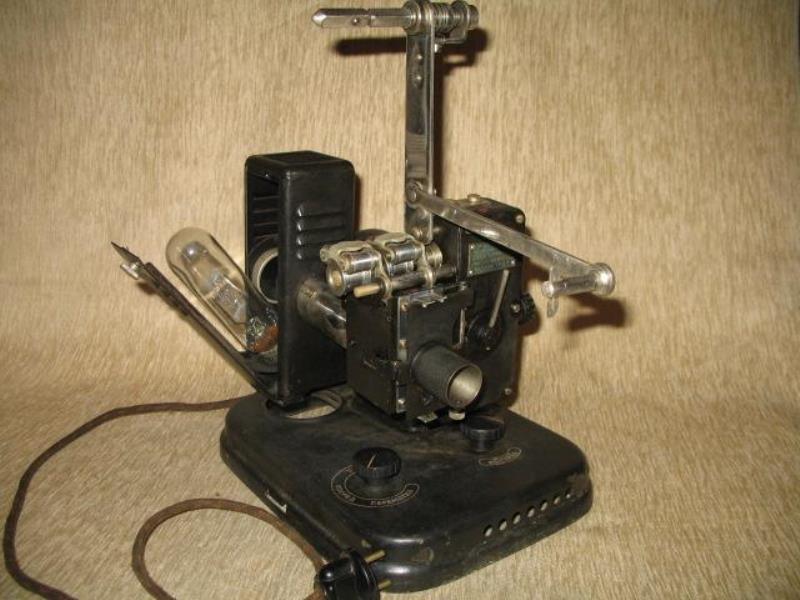 Produced at Kinap factory in Odessa this silent 16mm movie projector was used for teaching purposes and War efforts for training people. Has forward and rear movements and still pictures projection. Extraordinary robust and simple construction. Produced in 1941 . A match box is included in the first picture for size proportions.