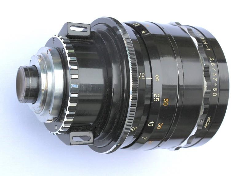 The Rubin-1 is a zoom lens based on the Zoomar formula. Maximum aperture is f/2.8 and it has a focal length range from 37mm to 80mm (slightly less than the Zoomar at 36mm to 82mm). The Rubin-1 has 14 elements in 11 groups. It is the standard lens supplied with the Zenit-6 camera. A second version of the lens, in photos 3 and 4 has an added tripod bush and strap lugs. This version was possibly made for the Zenit-5.