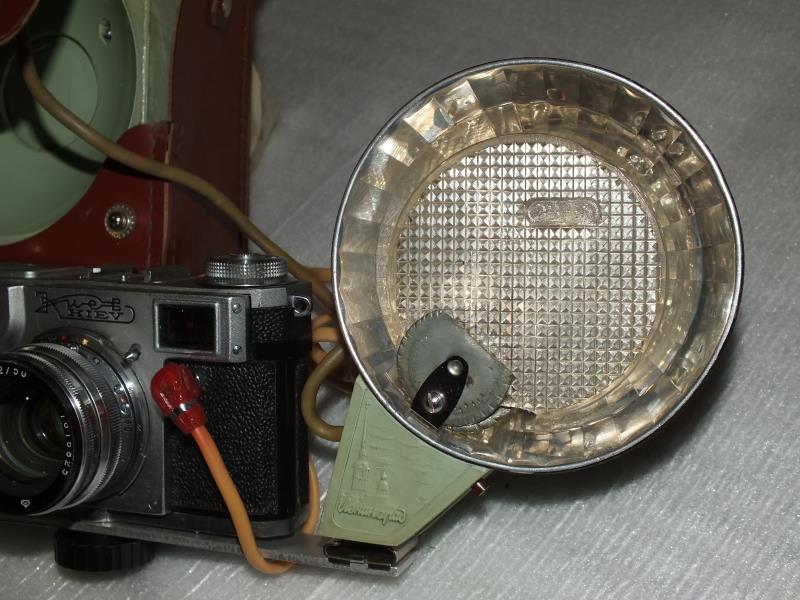 The device consists of a power supply, which houses two batteries, as well as a calculator and a reflector with a flash lamp (IPC-120) fixed to the leg and having a removable lens. The guide number when using the film 130 units. Standard - GOST 24 (90 units - 18, 65 units. - 16, 45 units. - 12). Flash energy - 36 J. Scattering angle - 60 °. The interval between flashes - 15-20 sec with new batteries, and 30-40 seconds. under the old batteries. Flash duration - 1/500 sec. The flash is powered by two batteries KBSL-0.5 (the battery from a flashlight); One set of batteries provides 70-75 outbreaks, the interval between flashes - 15-20 seconds. Dimensions, mm - 150x62x148. Weight 1.2 kg.