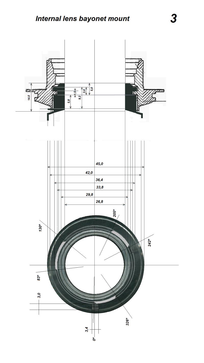 The three images in the beginning shows details of this Contax Bayonet in camera body and in the accessory and normal lenses.