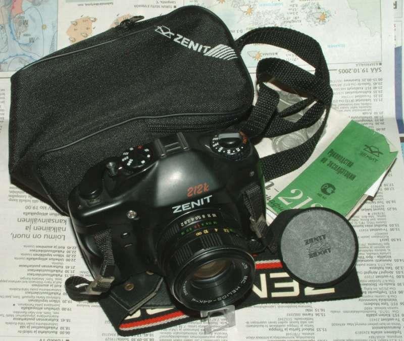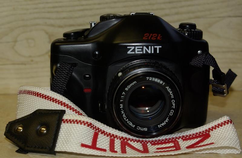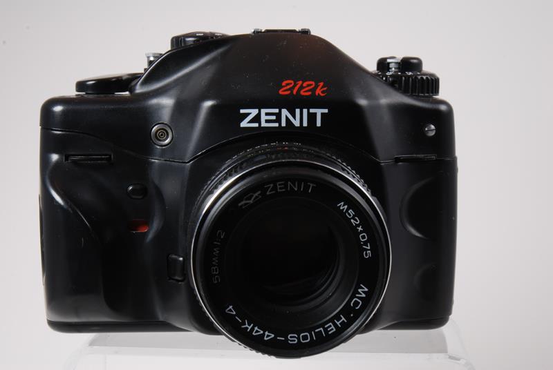 Zenit-212K is the successor to the Zenit-122K with redesigned handgrip and more shutter speeds: 1/8s, 1/15s, 1/30s, 1/60s, 1/125s, 1/1250s, 1/500s plus B. Due to the extra slow speeds (1/8 & 1/15) the shutter speed knob sits higher. When turning the knob to slow speeds you can even clearly hear the extra clockwork sound!. Early 212K‘s came with Helios-44K 2/58 lens, but most of them come with the very sharp 2/50 mm Zenitar K2. The 212K has got a more ergonomic body. The selftimer is like the 122K, located inside the new ergonomic handgrip. The lightmeter is identical to the Zenit-122, but very slow on the added slow speeds due to inferior sensitivity. A simple 3 led meter, its hotshoe syncs to the usual 1/30.