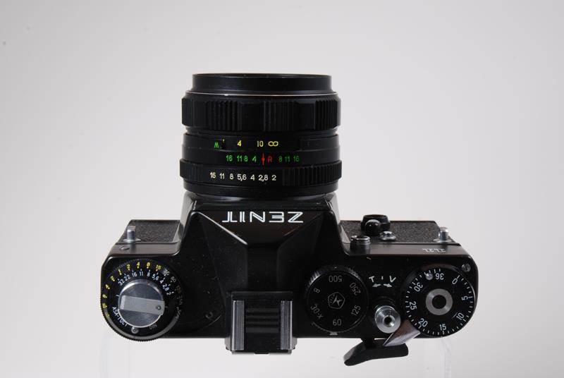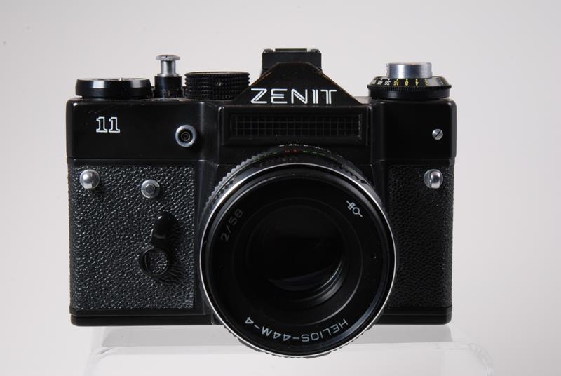 The Zenit 11 is a solidly-built camera with essentially the same Leica type cloth shutter as earlier Soviet rangefinder and SLR cameras. It has an external selenium meter mounted on the prism front above the lens. The meter isn't coupled to the camera. The Zenit uses the M42 Pentax screw-mount lens which means there is a variety of lenses from all over the world that will fit it. Partially depressing the shutter release stops down the lens. Additional pressure releases the shutter (source: http://home.att.net/~wayne.cornell/camera/russianslr.html).