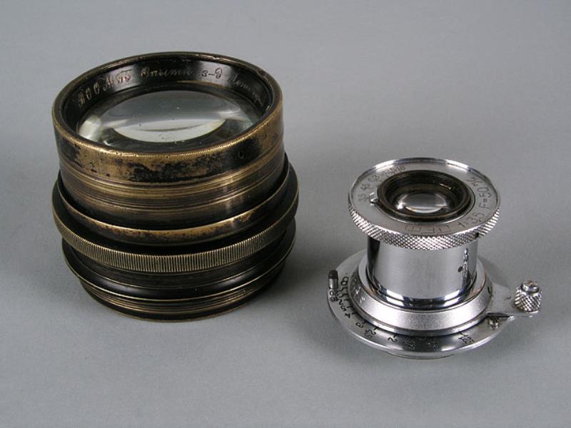 Probably re-designed by GOI (The State Institute for Optics) which is still in existance in Leningrad today. This lens is uncoated, has a 58mm screw-threaded mount, a heavy bronze body, a 20 blade diaphram, and will work well on standard Soviet FK View cameras (as well as on non-Soviet view cameras) that were in use at that time and later. The last photo shows it next to a FED 50mm lens for size comparison.