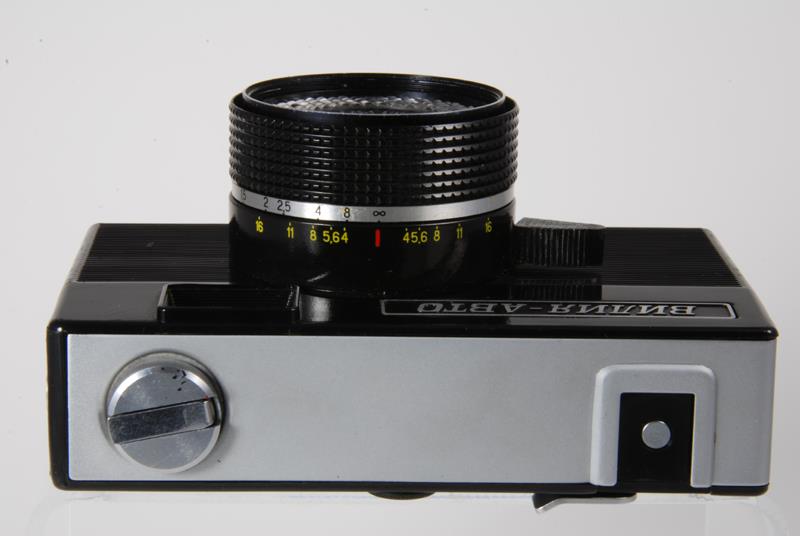 Vilia-Auto camera is a Vilia with a Selenium meter and shutter speed automation in place of manual settings. Vilia-Auto camera comes with a black vinyl case.