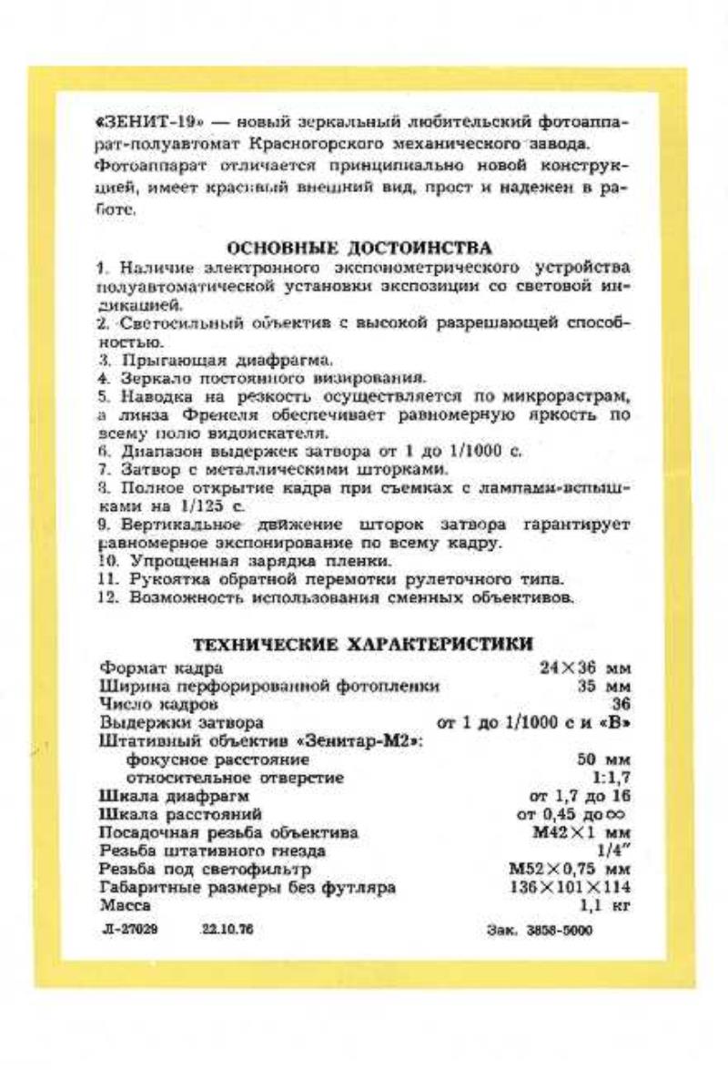 KMZ also released a brochure of Zenit 16 badged as Zenit 19 in 1976!
