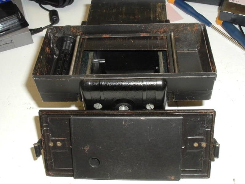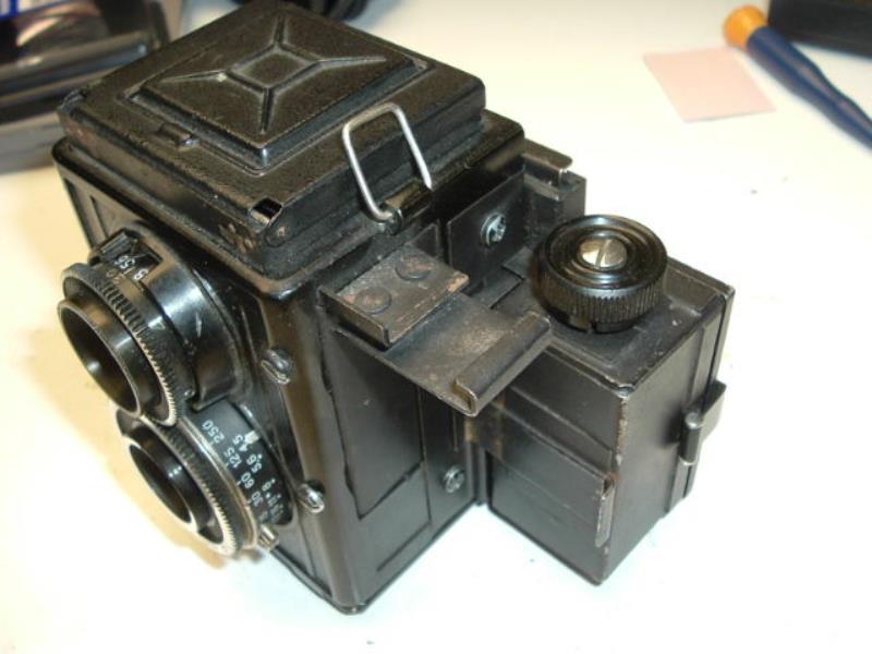 Modification of Lubitel (or Lubitel 2) to have 6x9 negatives. Most likely made to fit some scientific equipment. Attachment made from still, using heavy industrial machinery with pretty good quality(not home made). Then attachment fitted to camera by hands using sander. Most likely this camera has light leaks and probably was used with low sensitive materials.