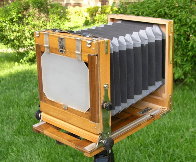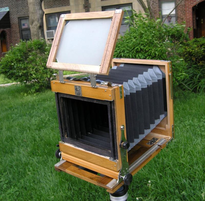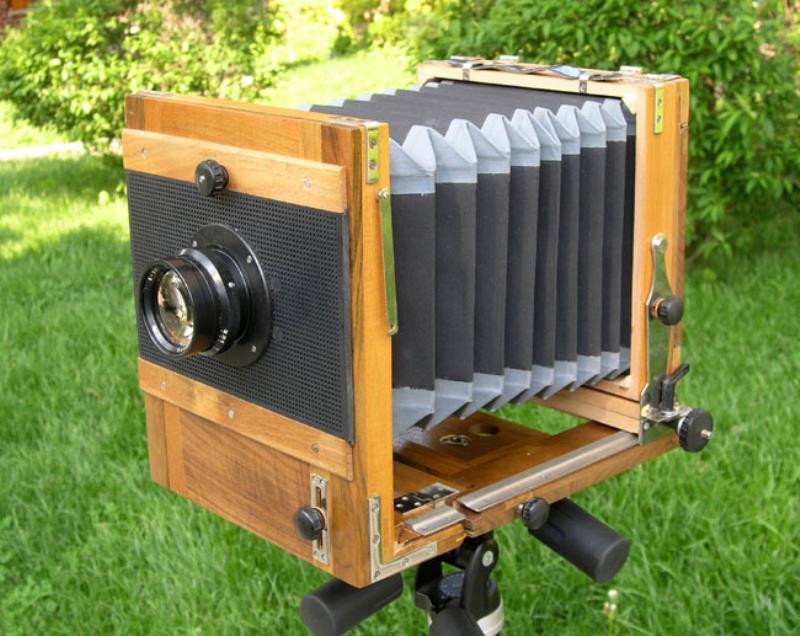 The FK (aka FKD) 13X18 (in centimeters, close to 5x7") is the only wooden field camera made in the USSR. The FK cameras were in production for a long time, they started before WWII and continued into mid-1980s. They were made by various factories, most of which did not specialize in photo equipment, but in furniture. The lens is the only known brand, it was made by teh Kazan factory. The camera design has not changed in decades, only workmanship and material varied slightly. This FKD has a few plastic parts - the lensboard and cassettes, but other than that it is identical to the FK cameras made in the 1930's.