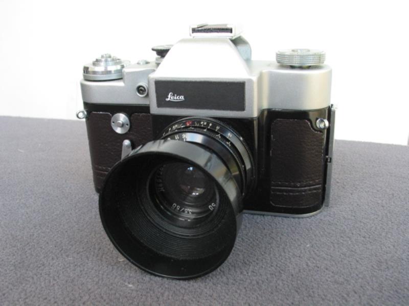 A Zenit 3m with a new leather picked from a hand note bag and a ney logo in the front.. A large sunshade disguised the Industar 50 lens, turning it into a larger lens .