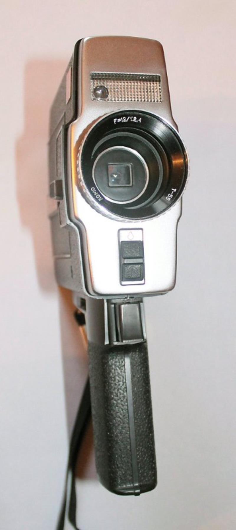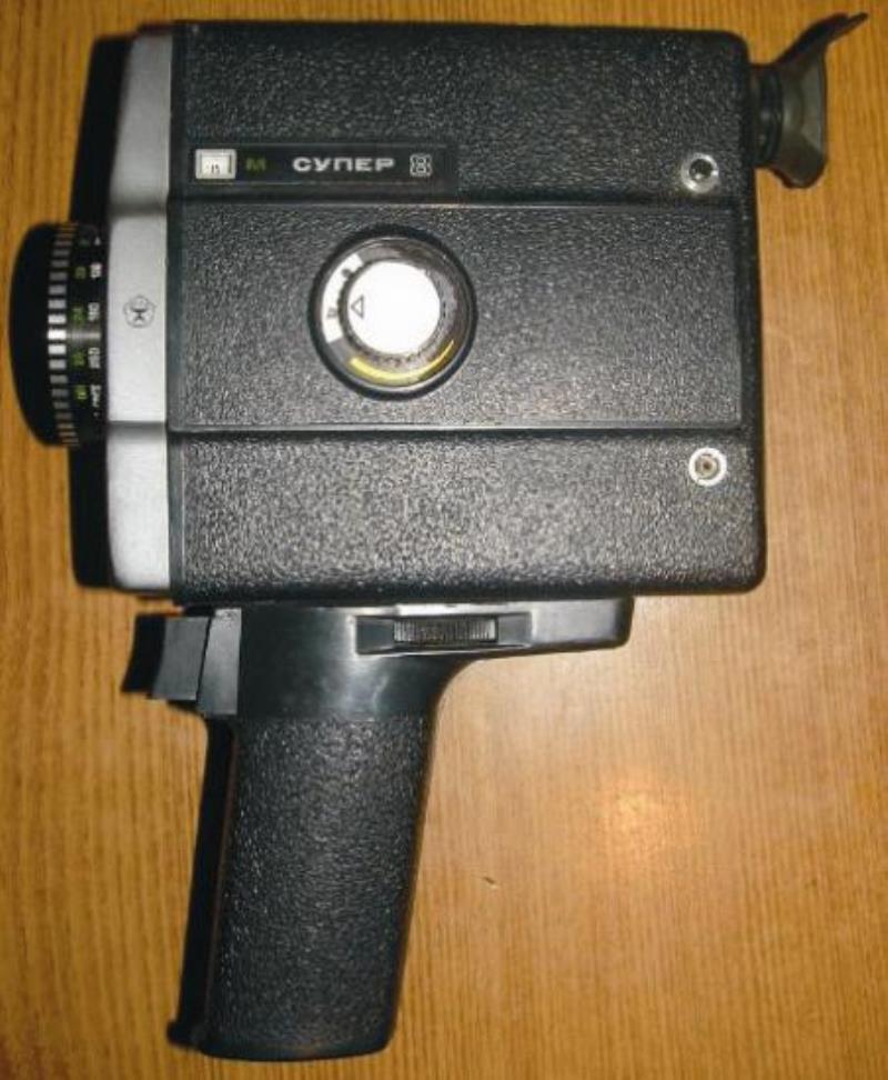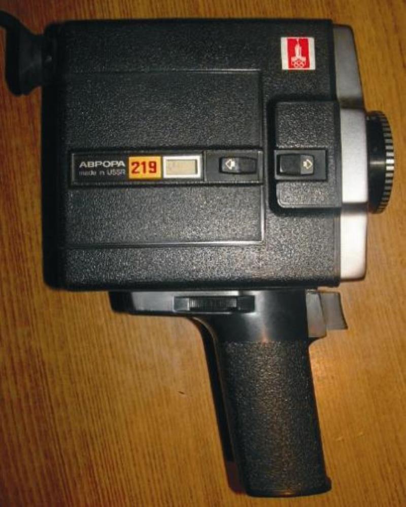 The Avrora-219 takes super-8 film cartridges. Electric motor drive. Lens: T-55 f/2.4 12mm. CdS meter with auto-diaphragm. 18 fps.