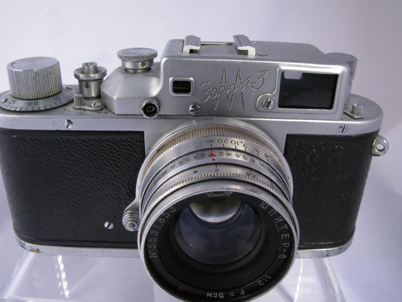 This is a rare version of the Zorki 3M with sync socket. Only limited quantities were released by KMZ. Collection of Steven Berkowitz
