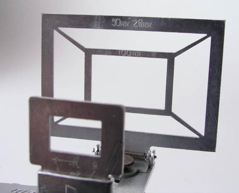 A chromed aluminum and metal frame "Sports Finder" developed along with the other new accessories for the FED-1 circa 1938. This was the period that the 28mm, 100mm, 50mm Macro, FED Lightmeter, FED Self timer, FED-1S with 50mm f 2.0 lens, and a few other accessories were released to increase the versatility of the FED.