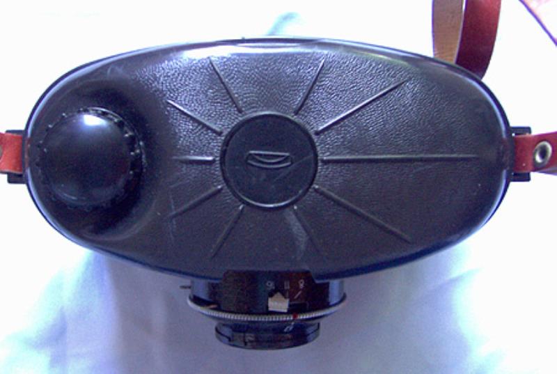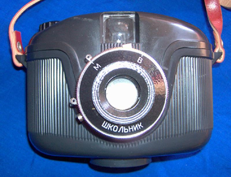 This second variant of the Skolnik has a chrome ring around shutter and lens and has a fixed shutter speed of 1/125 instead of 1/60th on the earlier all black version.