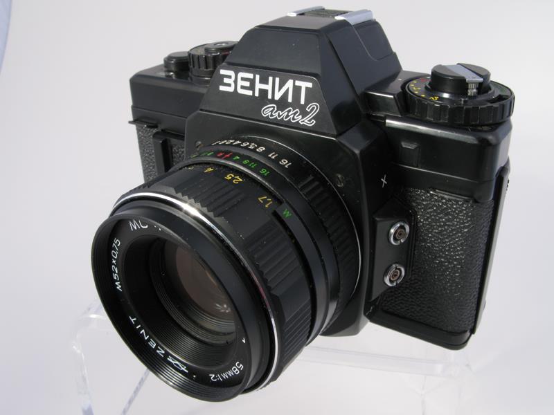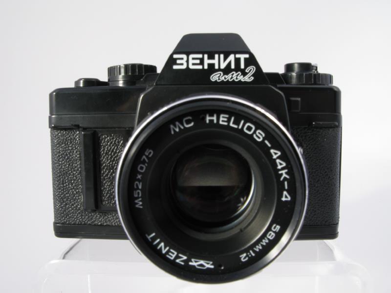Later Zenit-AM2 cameras had export markings in Roman Characters. Visually no otherwise different ... (sovietcams.com) Also available with Helios 77K-4 (see last photo) which is also export body