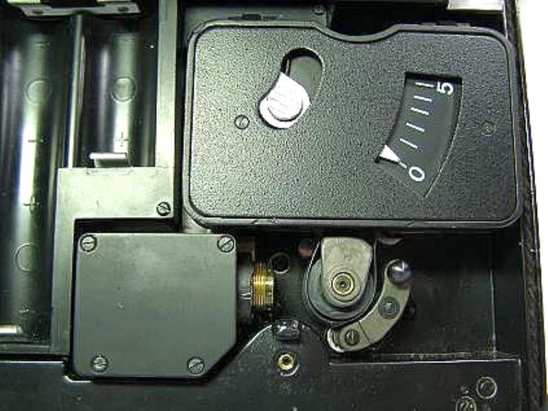 The third photo shows the top edge with its LED indicator lights. The green light (the lower one at the right hand end) illuminates while the internal lights are on showing that the scanning speed is correct. The red LED (above this one) indicates the start of the scan and the red LED (at the left hand end) illuminates when the film runs out. The final two photos show the film magazine, which takes 16 mm unperforated film. There is a control knob on the bottom of the unit to adjust the brightness of the internal lamps. The film is advanced by a mechanical linkage to the rollers and does not rely on the batteries (5 x 1.5 Volt Size C LR14). The lens is an Industar with a fixed aperture of f/2.8 and a focal length of 19mm.