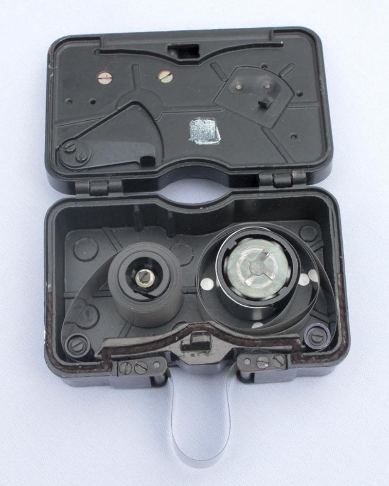As expressed by the English name "rollover camera" adobted for this camera (also known as a "brush" camera"), this device is actually a camera despite its looking like a thick notepad or a book. Its use is quite simple: the book-camera is placed against the document to be copied. One then "brushes" or "sweeps" the device as you would a paintbrush. The little rollers on the edges drive the mechanism and activate the lights ... and document is copied. You dreamed about it, the KGB did it! (source: J.L.Princelle „Authentic Guide to Russian & Soviet Cameras: 2nd Revised Edition", 2004).