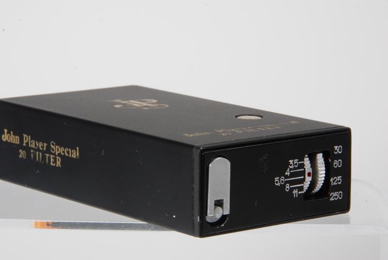 To wind the camera, one pulls on one of the cigarettes and then presses the shutter button on the side of the body. The camera comes with a paper John Player Special cigarette box.