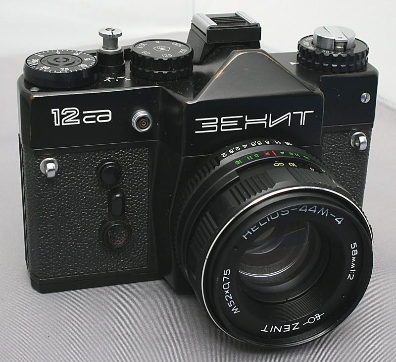 The Zenit 12sd is the domestic version of the Zenit 12XP. It is semi-automatic SLR, with a built-in TTL CdS meter. Two red LEDs in the viewfinder are used to select the correct aperture. The fabric focal plane shutter has speeds from 1/30 to 1/500 sec. plus B. It has a PC socket and hot-shoe and is synchronised for flash at 1/30. The standard lens is the Helios-44M-4 f 1:2.0 58 mm.