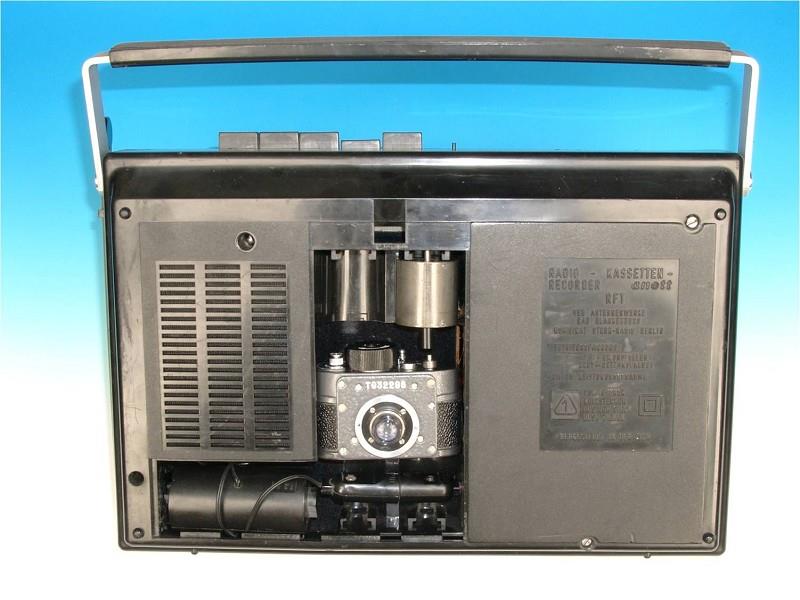 Another ingenius F-21 "cover". The camera would mount inside the cassette player and shoot out of the back, seemingly controlled by the buttons on top.
