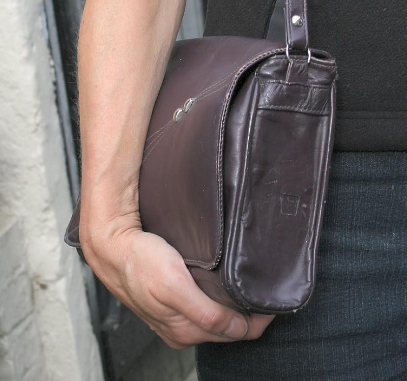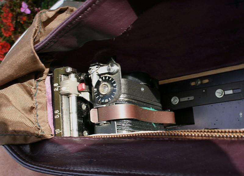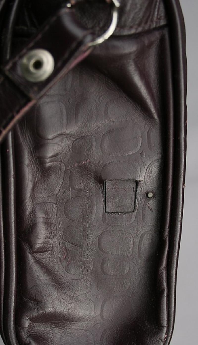 This is a brown, soft leather handbag which has been modified by the addition of a Nailon camera harness. It is presumably for a female operative. Although an F-21 Ajax could be used in it, it is obviously designed for the Nailon as there is a fibre-optic spot for the meter cell next to the lens opening.