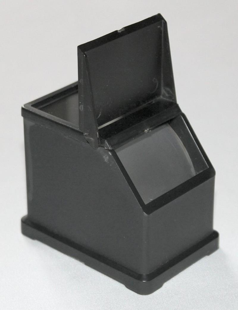 The focuscope is a device to aid focussing of enlargers and printers. It is placed on the easel and the image is projected into the top. Lifting the flap at the front allows an enlarged image to be seen in order to fine focus. This focuscope was manufactured by Ekran.