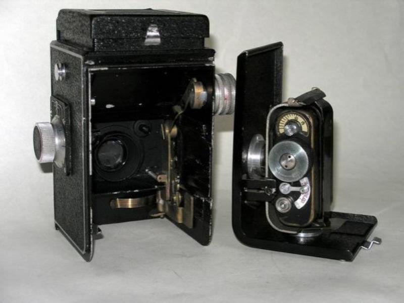 This is a spy cover made out of Polish WZFO Start TLR camera that shoots through the back of the camera.