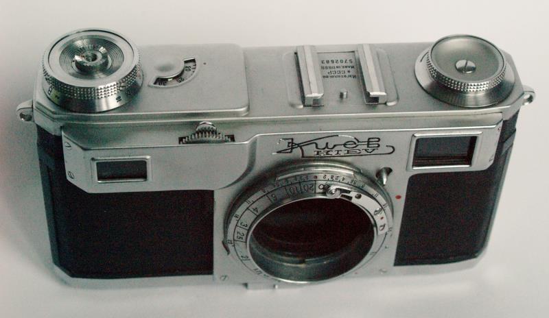 This camera is identical to the Kiev II camera, but does not have the rangefinder inside the viewfinder and does not have the self-timer. It has probably been produced for scientific or military purposes.