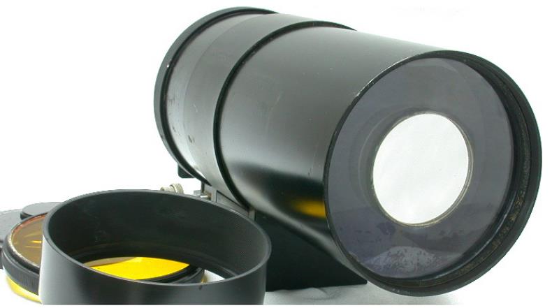 Very rare 1000mm f 10 mirror lens made by Sea Gull in Shanghai. All metal construction, following old Soviet MTO 1000 lenses. The lens has a sturdy tripod mount and an odd focusing bellows in the rear with meter scale. The lens comes with yellow filter, sunshade and wooden case. Minolta MD mount. These lenses were primary made for the Chinese Army and were not sold to the consumer public. Production Year: 1968.
