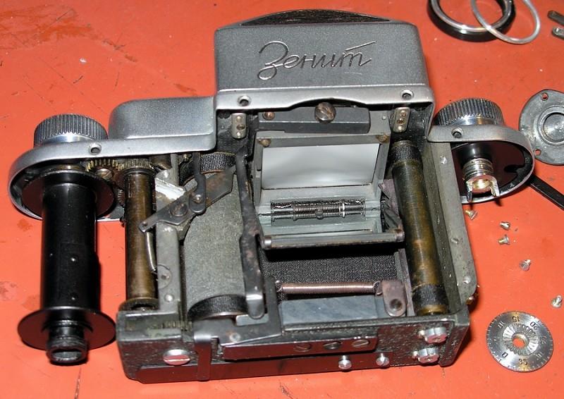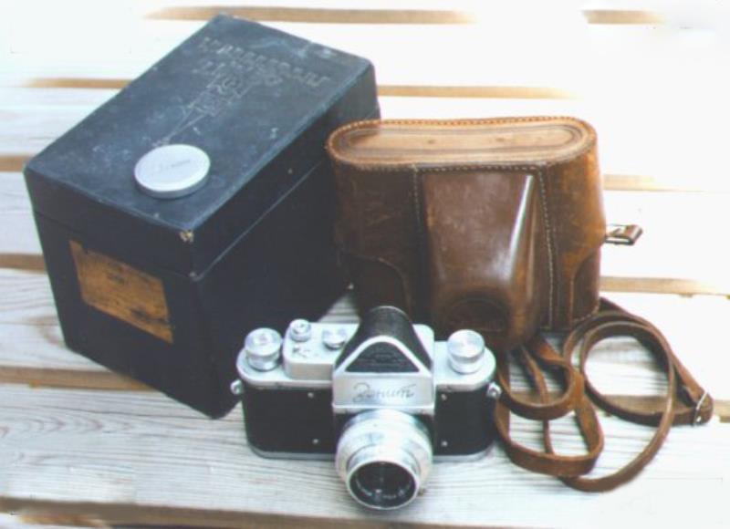 First, numberless Zenit, also sometimes called as "Zenit-1". Produced 39.019 pcs in 1952 - 1956. Camera in pictures is a 1954 and with wrong, later Industar-50 lens. Correct lens is Industar-22 with focus lever up to 1955. Prototypes and preseries had slightly different top plate or name plate. Based on Zorki rangefinder camera, bottom film loading. Cover vulcanite, not leatherette.