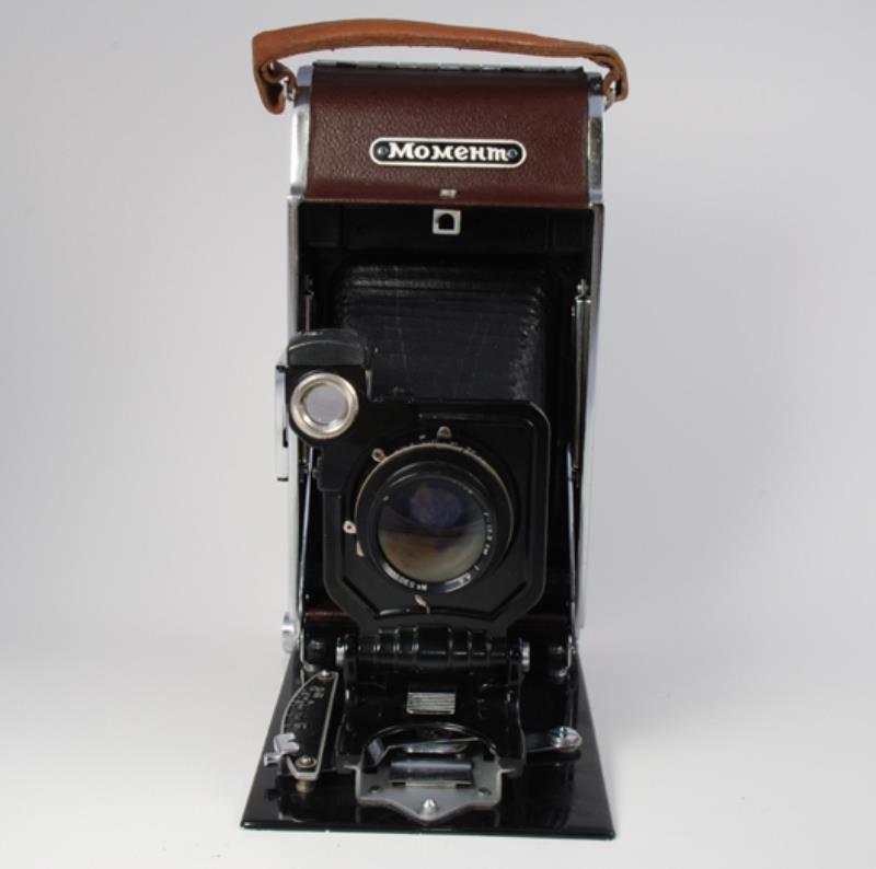 Moment camera is the first Soviet camera of the Polaroid type. Produced in the series of 1952-1954, this camera can hardly be found in full set. The camera was produced with the main aim to implement the idea of Polaroid 95 within the USSR and to give Soviet people the chance to appreciate that technical paragon of the time. “Moment” is a wonderful camera designed according to brilliant know-how of precise optical equipment. However, the reliability of its construction and excellent performance characteristics were not enough for the camera to overcome all troubles on the way to the customer and to enjoy vast popularity with the public. The reason is simple: miserable quality of Soviet photographic “Polaroid” film, its skyrocketing prices and general shortage didn’t allow the post-war society grasp the advantages of the camera. When it became clear that common people can’t let themselves pay a lump sum for some unproved film, Soviet leaders decided to direct the whole series of “Moment” cameras to photographic studios. Yet, even there the notorious low quality of the film and numerous problems during its processing made photographers switch to traditional cameras, like FKD. The major part of “Moment” cameras were returned to the factories, others were destroyed by the time or people. The camera left behind its time.