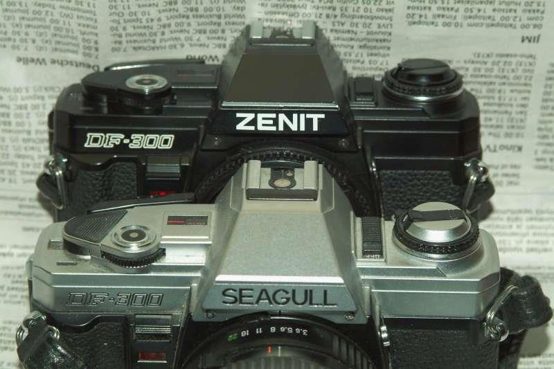 Most likely the only fake Zenit: a Chinese Seagull, made in Shanghai and actually a licence produced Minolta! Original Seagull version is in front. Seems like the nameplate "ZENIT" was made afterwards and changed to the bodies due to a sloghtly different shade of black. But judging by the professional looks and the fact that there has been several of these for sale it has been made by some commercial company in attempt to sell them better when new? But where?