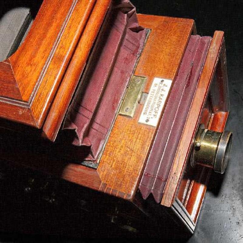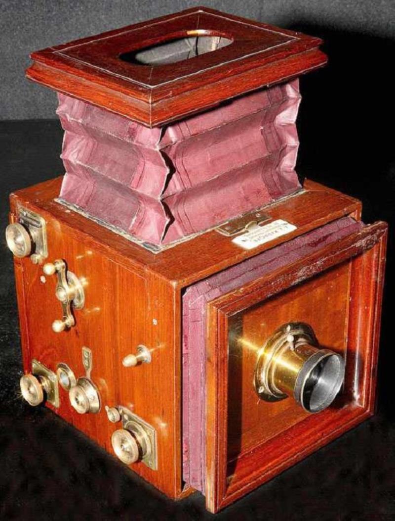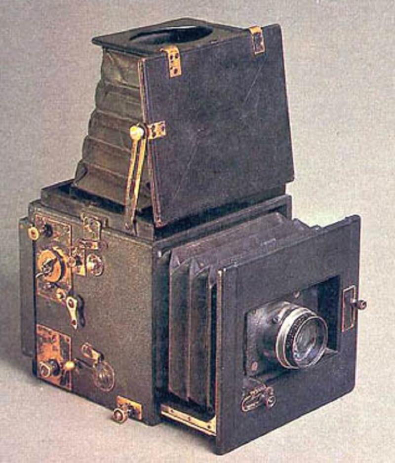 The construction of this camera later becase the basis of modern SLR technology - the mirror would raise up at the time of shutter activation, creating an access to a photographic plate. The shutter speed was regulated by special device. Camera was made for 9x12 and 13x18 cm plates. The magazine was made for 12 plates for one of these sizes.