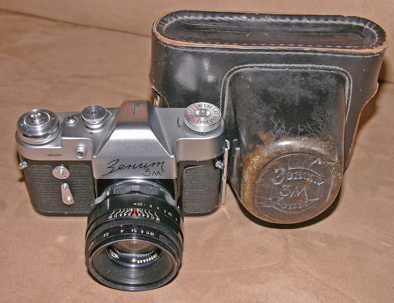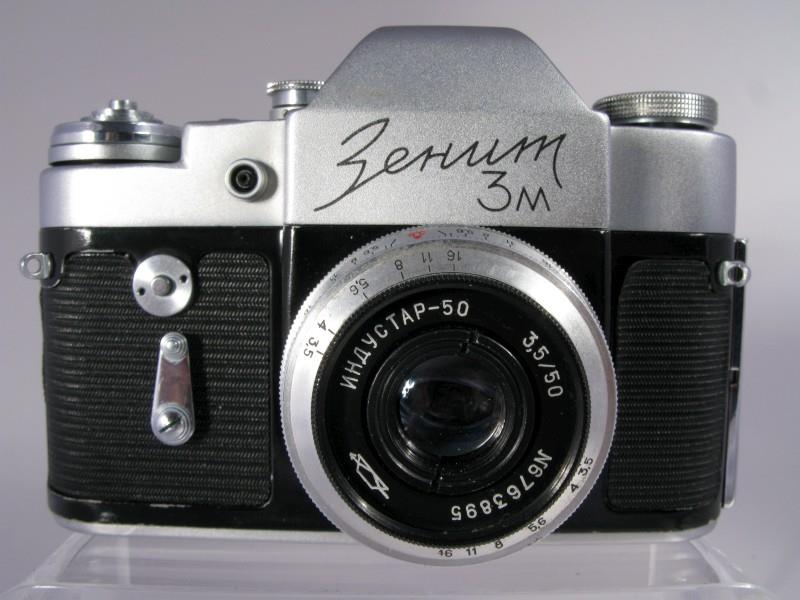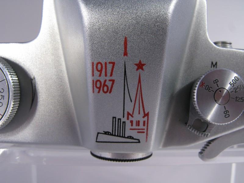A commemorative Zenit 3M of 1917-1967 - 50 years since October revolution, depicting Kremlin, Cruiser Aurora and a space rocket. Also with KMZ-logo in front.