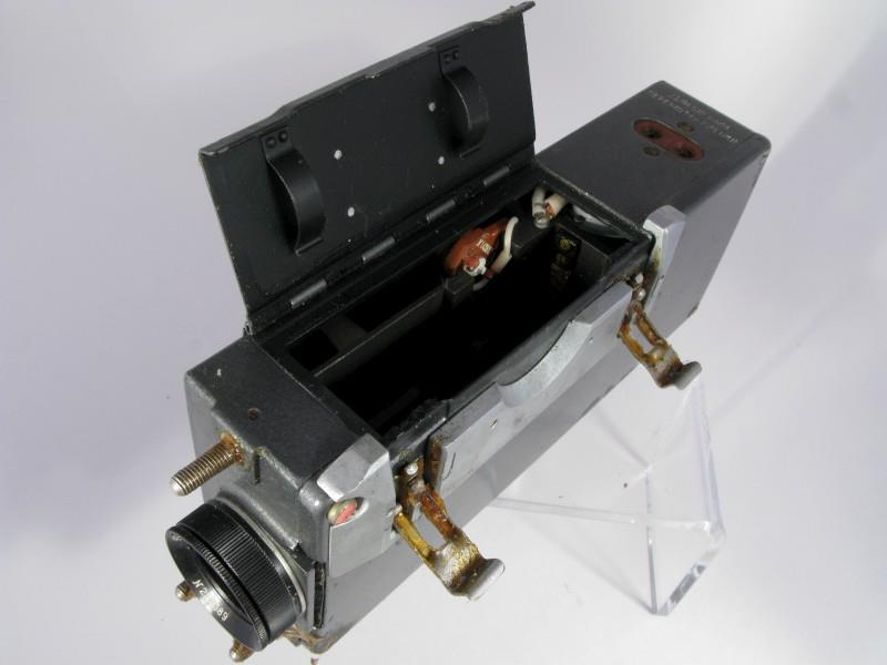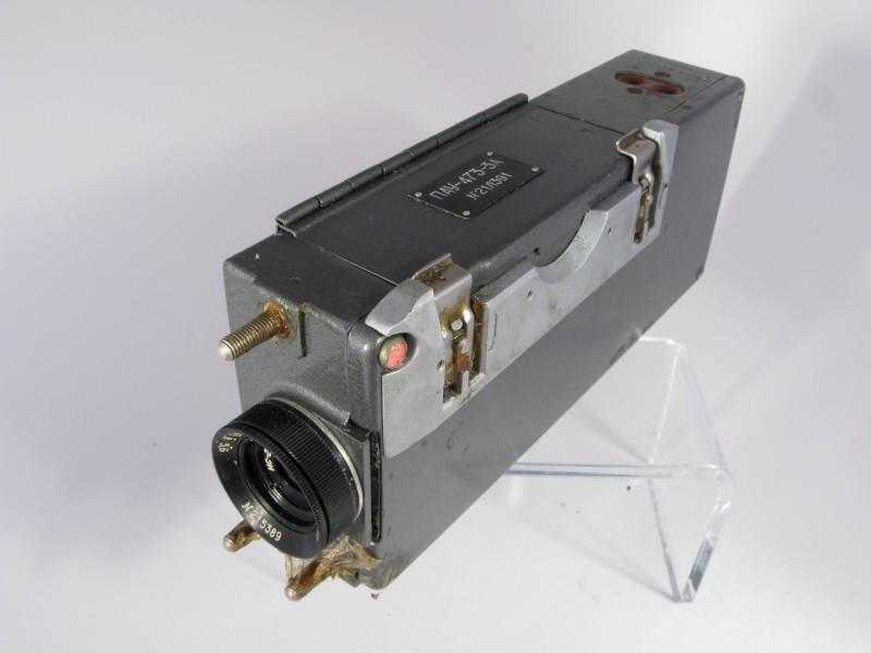 An aircraft camera used in cockpit to take time lapse images of radar screen or other instrumentation readouts.