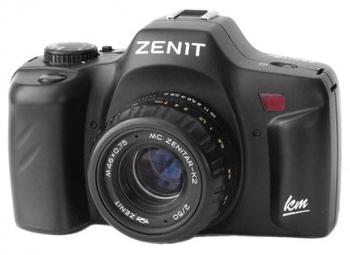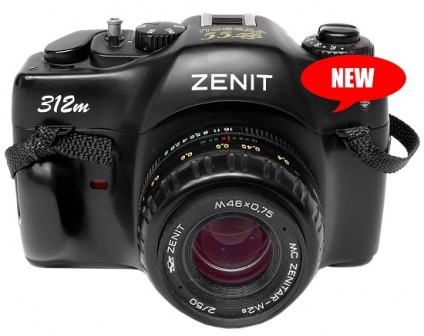 New KMZ Zenit generation camera. Similar to Zenit-122, but with new ABS plastic body. Delivered with a pretty new version of the aging Helios, known as the Zenitar-M2 2/50.