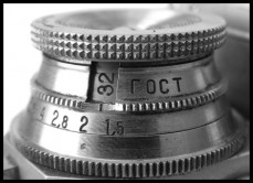 | | | Kiev III #A540204. | | | | As it was mentioned above already, some Kiev III cameras from 1954 have strange serial number with "Б" (russian "B") Cyrillic character, instead of usual "A". Although camera collectors had some tries to clearify the reasons of these markings, it still stays unclear for me. New "GOST" engravings on the exposure calculator, instead of early "DIN" one.