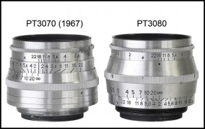 PT3070. Identical to PT3065, but with export name markings. Released by KMZ in 1961-1968. Some lenses have an additional "MADE IN USSR" markings on body. Late samples have "N" prefix in serial number, instead of "No" one in previous lenses. Very common to find nowadays.