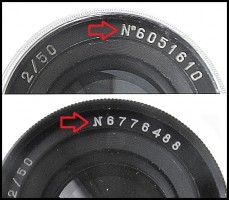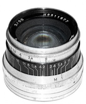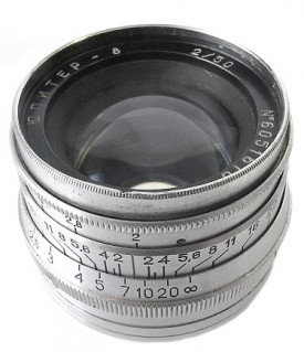 PT3065. Identical to PT3060, but with new markings on the lens faceplate: "1:2  F=5 cm" replaced by "2/50". Released by KMZ in 1960-1968. No more red character "П" on the faceplate. Some lenses have an additional "MADE IN USSR" markings on body. Late samples have "N" prefix in serial number, instead of "No" one in previous lenses (see picture below). Very common to find nowadays.