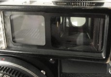 The new rangefinder is probably the most significant and complex system of the Kiev-5. Its base is smaller than in Contax, but it is still very accurate. The image in the viewfinder is very bright and large (looks almost like the VF of the Leica M-series). There is an illuminated brightline frame for 50 mm lens inside the viewfinder. It seems that the outside borders of the viewfinder frame correspond to a 35 mm lens. The brightline frame is parallax corrected, it moves when the lens is focused (source: www.fedka.com).
