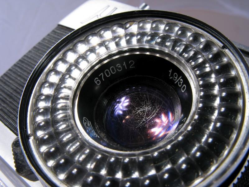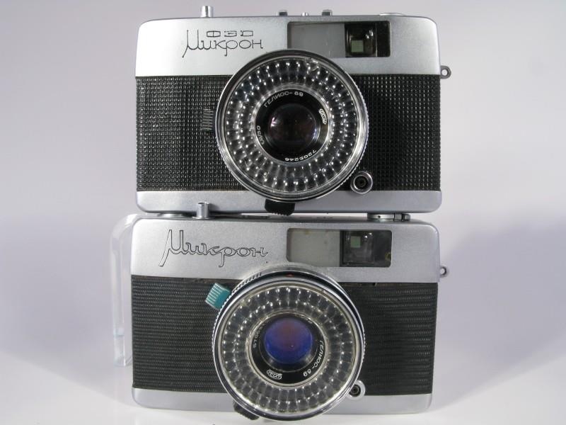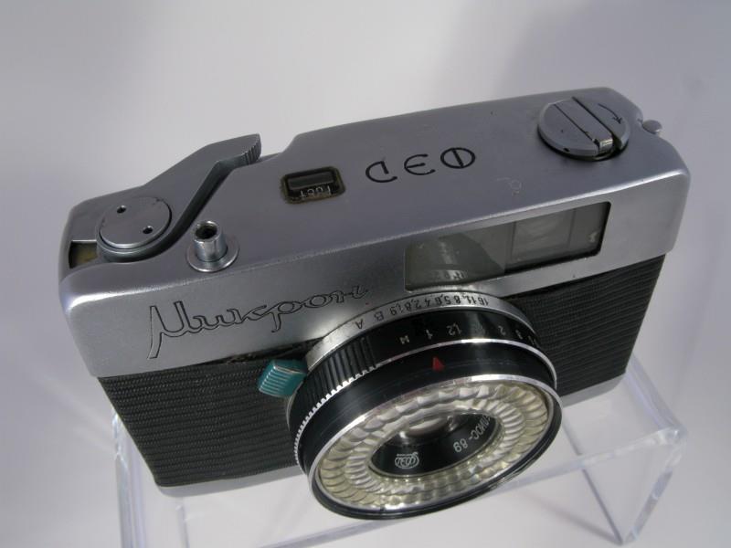 This is the FED Mikron Preseries, not to be confused with Prototype which is in separate entry posted by nightphoto (Bill Parkinson). This camera differs slightly. The inscription is now double-stroke vs filled-in on the prototype and the little lever around the lens is green, as well as there is a dot for the aperture indication vs little teardrop shape on the prototype.