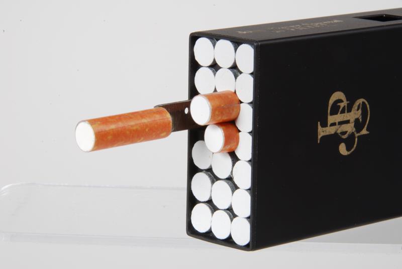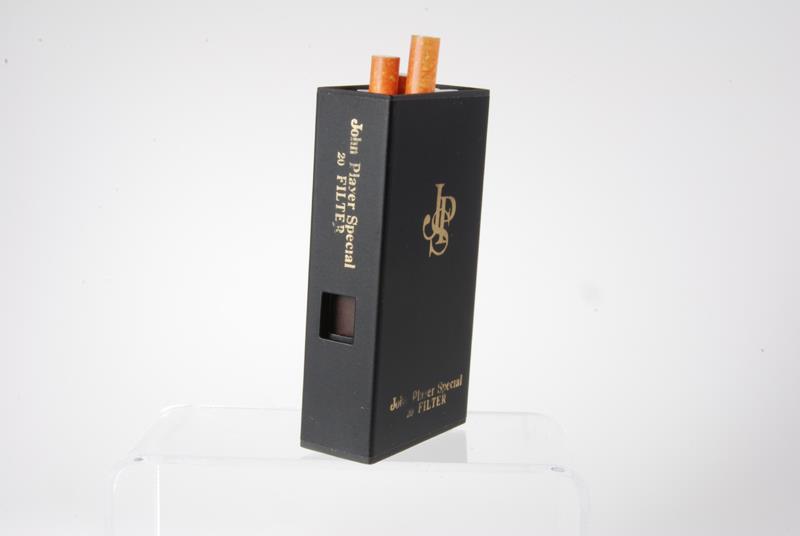 To wind the camera, one pulls on one of the cigarettes and then presses the shutter button on the side of the body. The camera comes with a paper John Player Special cigarette box.