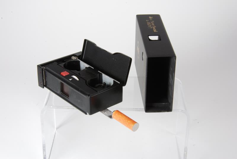 This is a spy outfit for Kiev 303, disguised as a cigarette box. The cameras seems to have been produced in limited quantities in 1980s.