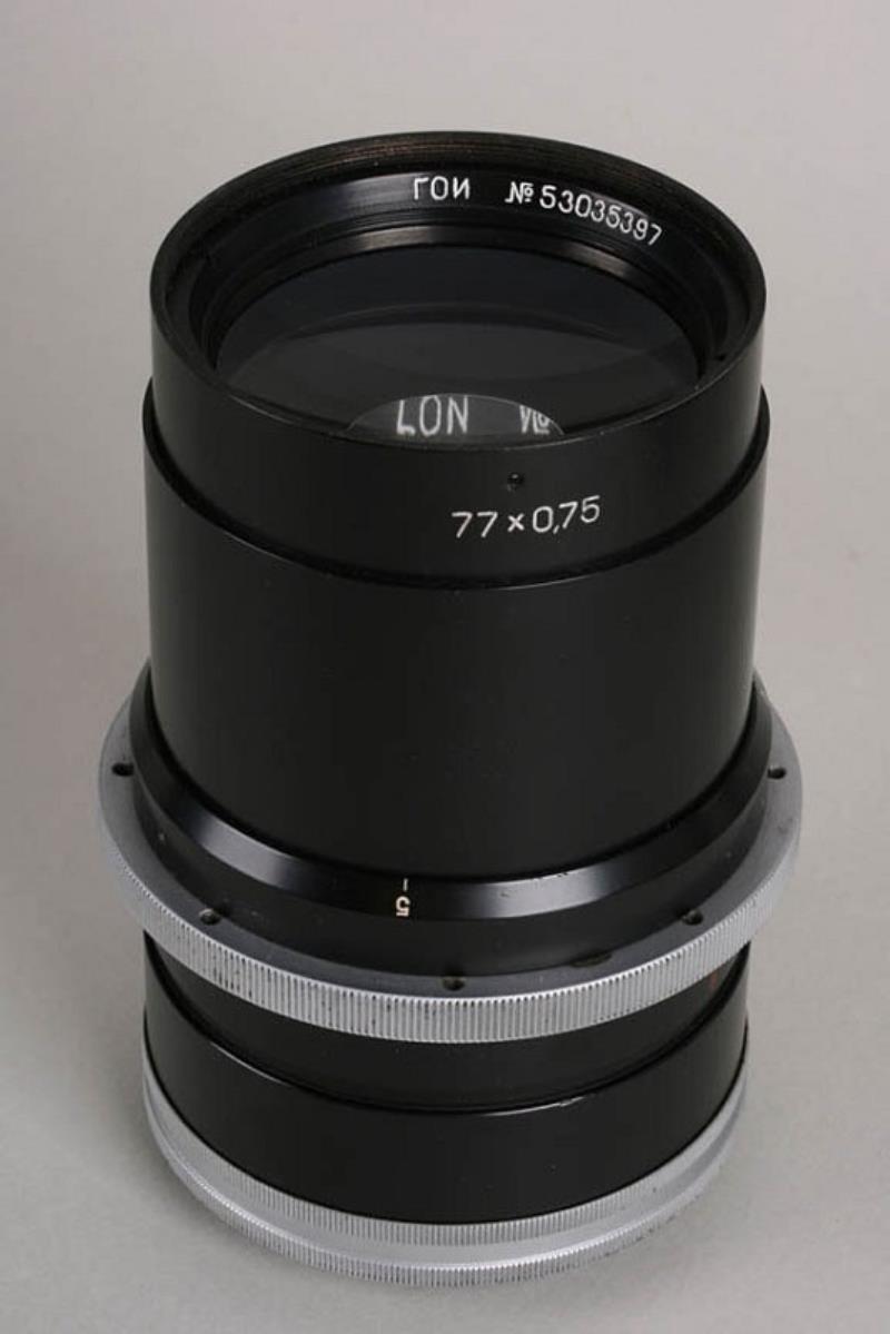 This lens has a small bayonet mount, possibly for an Exacta test camera. Many lenses, such as this, made at the V.I Vasilov State Optical Institute, were made as an edition of two or three for testing purposes. If the tests proved positive, the design was sent to a manufacturer to produce in series. In this case, to KMZ who produced the 500mm MTO lens starting in 1955.