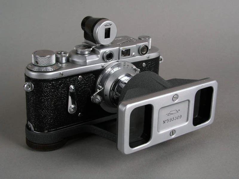 Made to use with Zorki-1 or Zorki-C Body and collapsible Industar-20 or Industar-50 lenses factory: KMZ / Krasnogorsk, USSR ..... Serial # 593309 (beamsplitter) Production: several thouand units from 1956 - 1960 Kit Contains: prismatic beam-splitter attachment / vertical viewfinder attachment / folding stereo viewer / stereo format double printing frame / Original box.