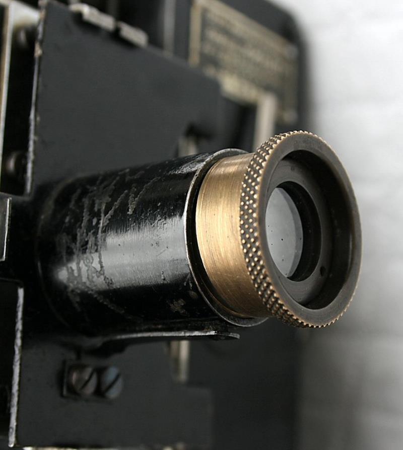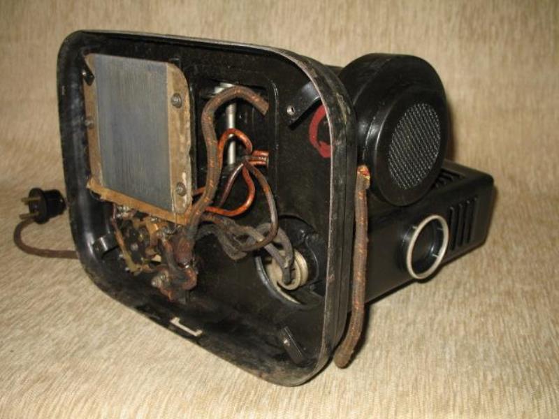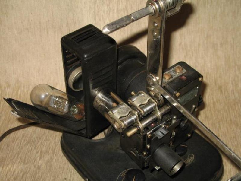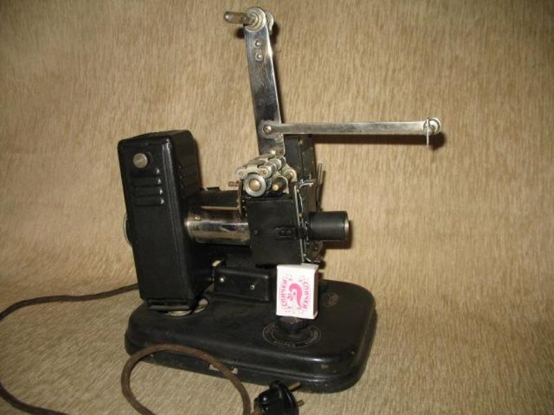 Produced at Kinap factory in Odessa this silent 16mm movie projector was used for teaching purposes and War efforts for training people. Has forward and rear movements and still pictures projection. Extraordinary robust and simple construction. Produced in 1941 . A match box is included in the first picture for size proportions.