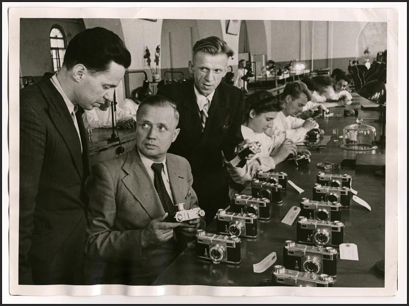 So possibly the ZK lenses were not ready at the time of this early photo, and the initial cameras were at least fitted with Zeiss Jena Tessar temporarily, at least until the ZK lenses were ready. But were any of the first Kievs actually released with these German lenses?