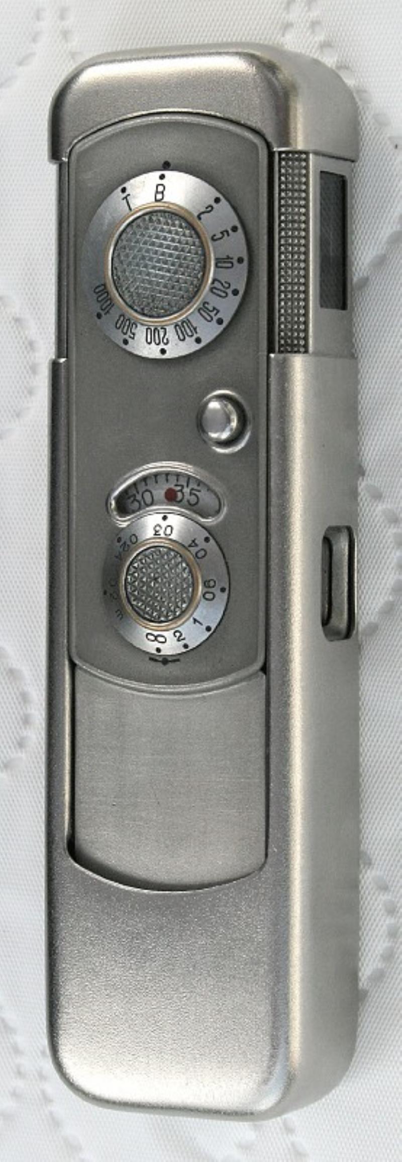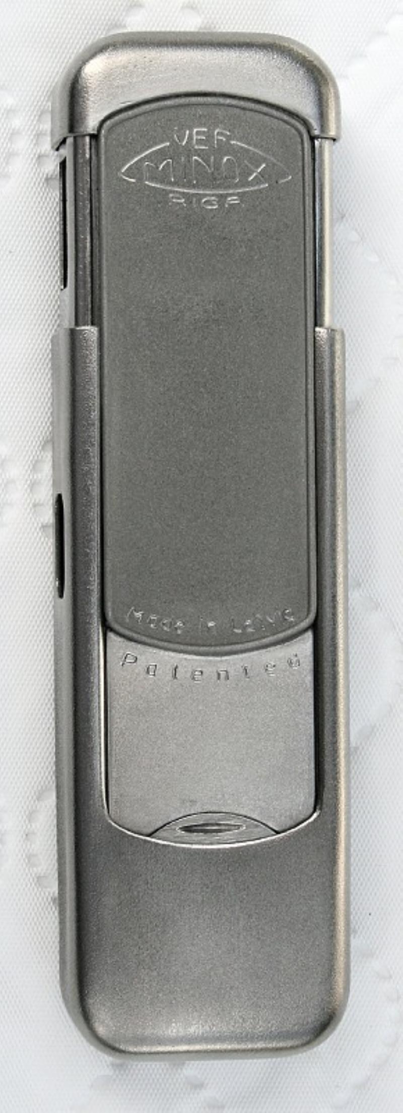 The Minox has a three element Minostigmat f/3.5 15mm lens and a full range of shutter speeds from 1/2 second to 1/1000 second plus B and T. The lens focuses from 20 cms to infinity. The camera uses 9.2mm wide film with a format of 8 x 11mm.