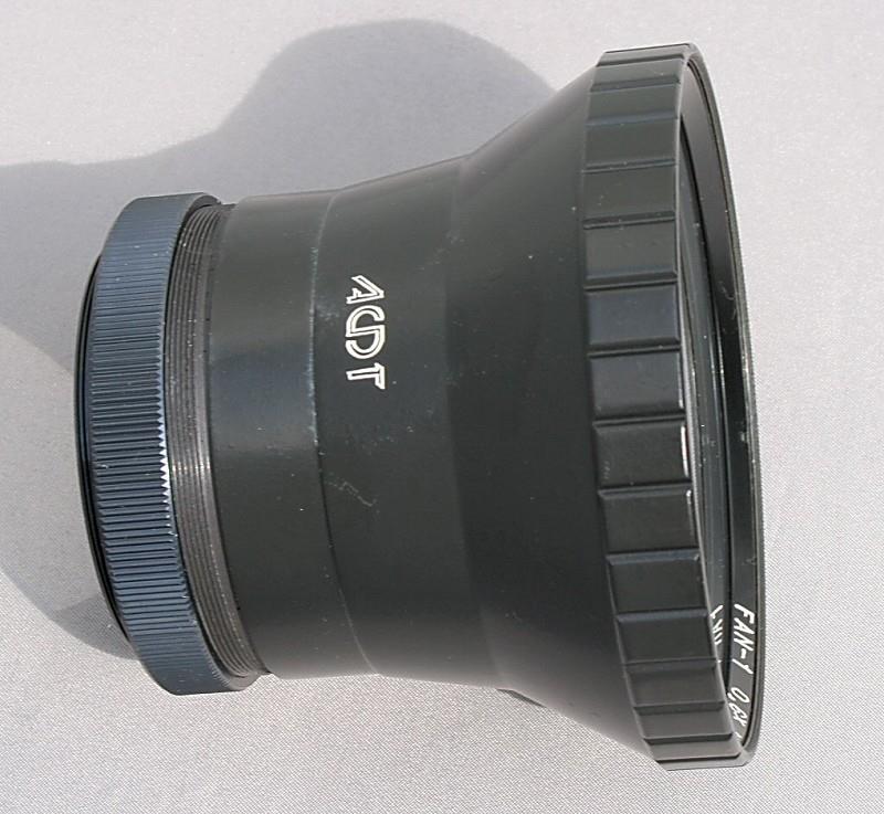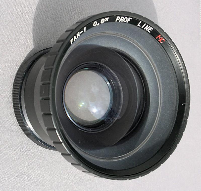 The FAN-1 is a wide-angle converter manufactured by ART-Filmotechnik in Minsk, Belarus. It fits on the front of the standard lens using the filter thread, and comes with adapter rings to fit M52, M58 and M62. According to the instruction leaflet, M55, M67 and Rolleiflex bayonet adapters are also available. Fitting this adapter to say a Volna-3 80 mm lens converts it to 50 mm, and fitting it to a Helios-44 50 mm lens, converts it to 31mm (i.e. a factor of 0.63). It can also be used on projectors and enlargers.