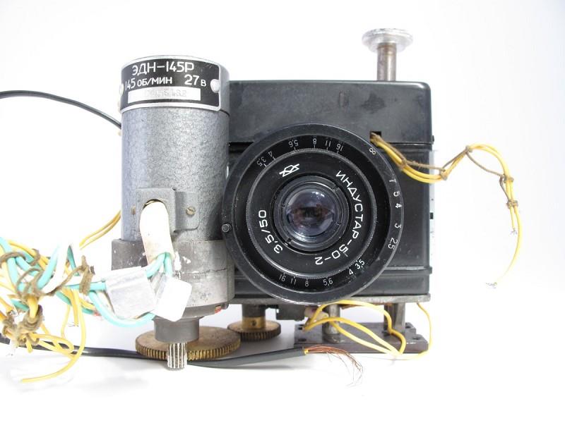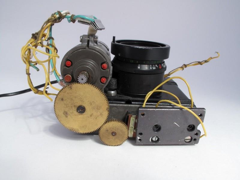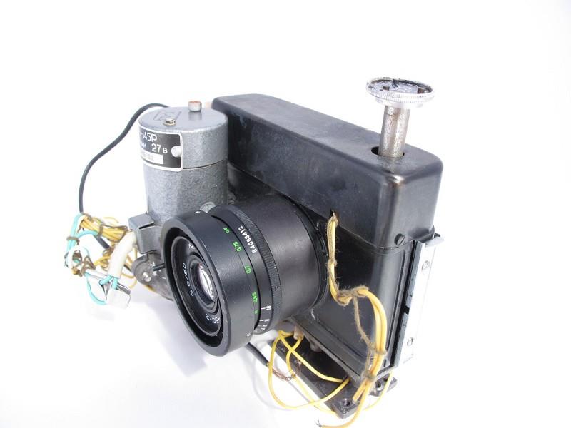 According to the seller of the camera this specially modified Chaika camera was used for taking mugshots of arrested suspects. By the looks of it - it was ripped out from an apparatus that had a motor control and more or less automated way of taking pictures. Judging by the lack of viewfinder it was meant to be stationary.